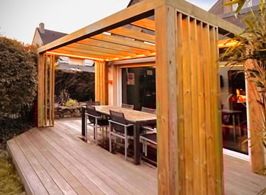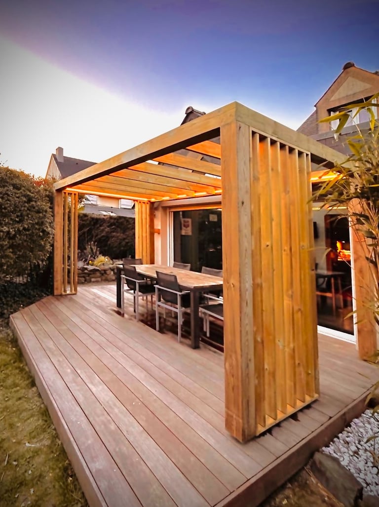 Pergola avec brises vue ajustables, système led avec éclairage variable